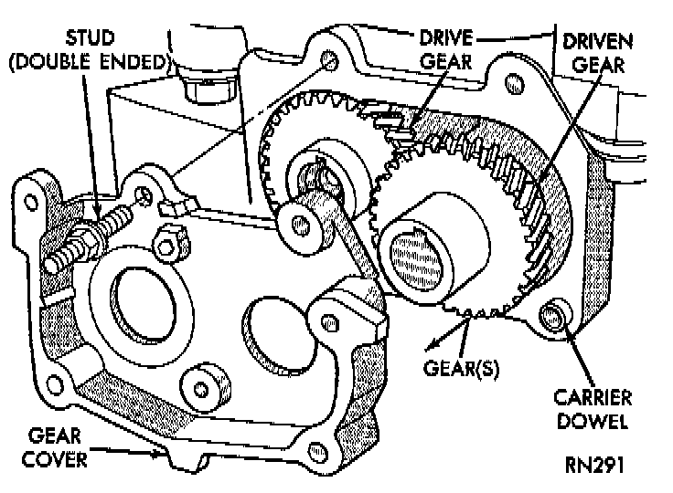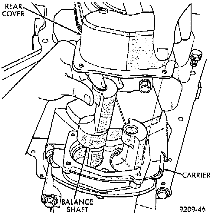 NOTE: The following components will remain intact during carrier removal. Gear cover, gears, balance shafts and the rear cover.