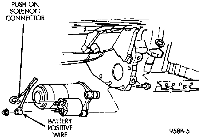 6. Remove three bolts attaching starter to transmission housing and remove starter from vehicle.