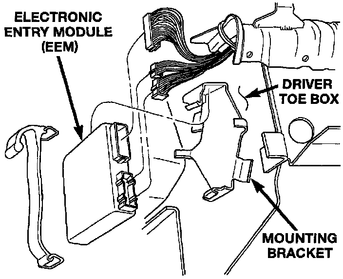 The electronic entry module is located on the driver's side of the center floor tunnel up underneath the instrument panel.