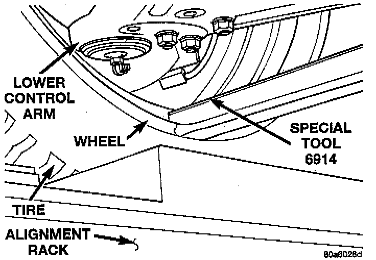 NOTE: The Viper front and rear wheel alignment must be checked and or adjusted to the preferred specifications, with the vehicle at CURB HEIGHT rather than at DESIGN HEIGHT.1. Correctly position the vehicle on alignment equipment per the alignment equipment manufacturer's recommendations.
