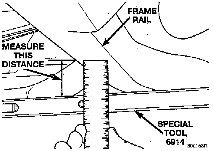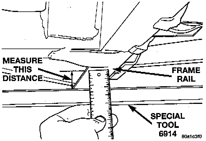 7. Check distance from both rear frame rails to top edge of Vehicle Height Checking Fixture.