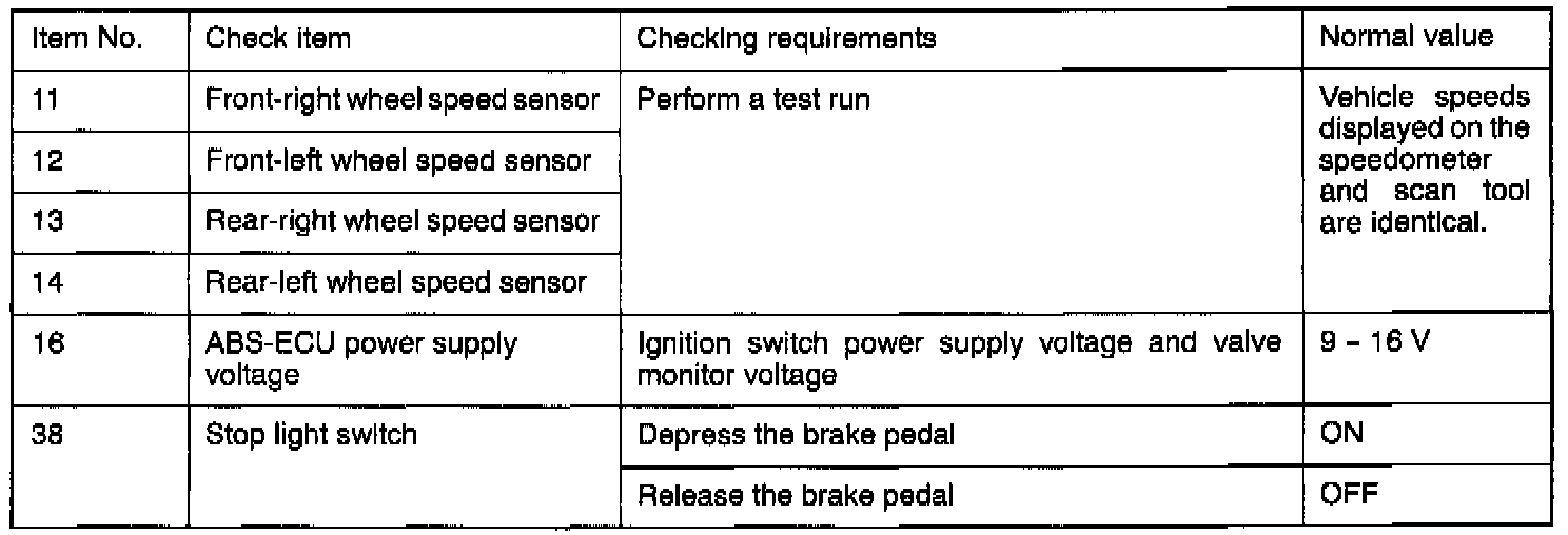 When the diagnostic trouble system stops the ABS-ECU, the scan tool display data will be unreliable.