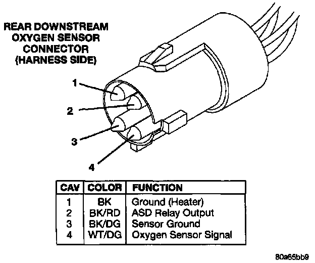 Rear Downstream Oxygen Sensor Connector (Harness Side):
