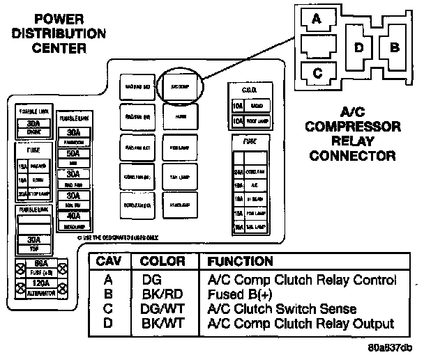 Power Distribution Center, A/C Compressor Relay Connector: