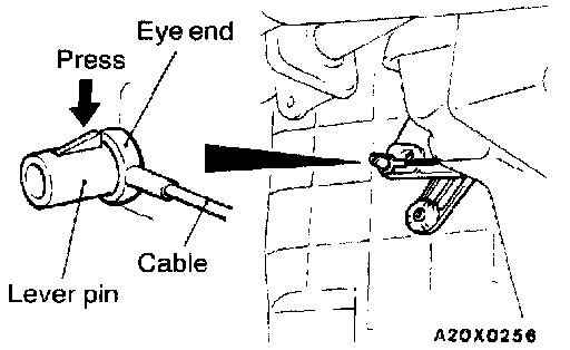 1. Press the lever pin to disconnect the air outlet change-over damper cable.