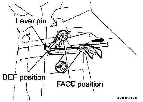 6 Set the air outlet change-over damper lever of the heater unit to DEF position and install the cable to the lever pin.