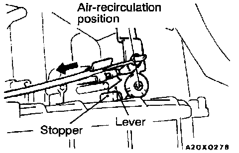 8. Set the lever for the inside/outside air change-over on the heater control assembly to the air-recirculation position.