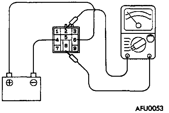 - Check the continuity between relay terminal No. 2 - 8 while connecting and disconnecting the jumper lead at the battery (-) terminal.
