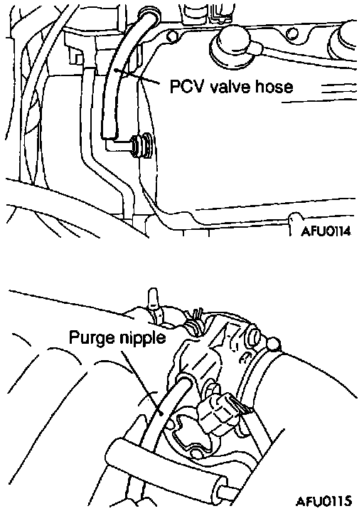 2. Disconnect the PCV valve hose from the intake manifold nipple.