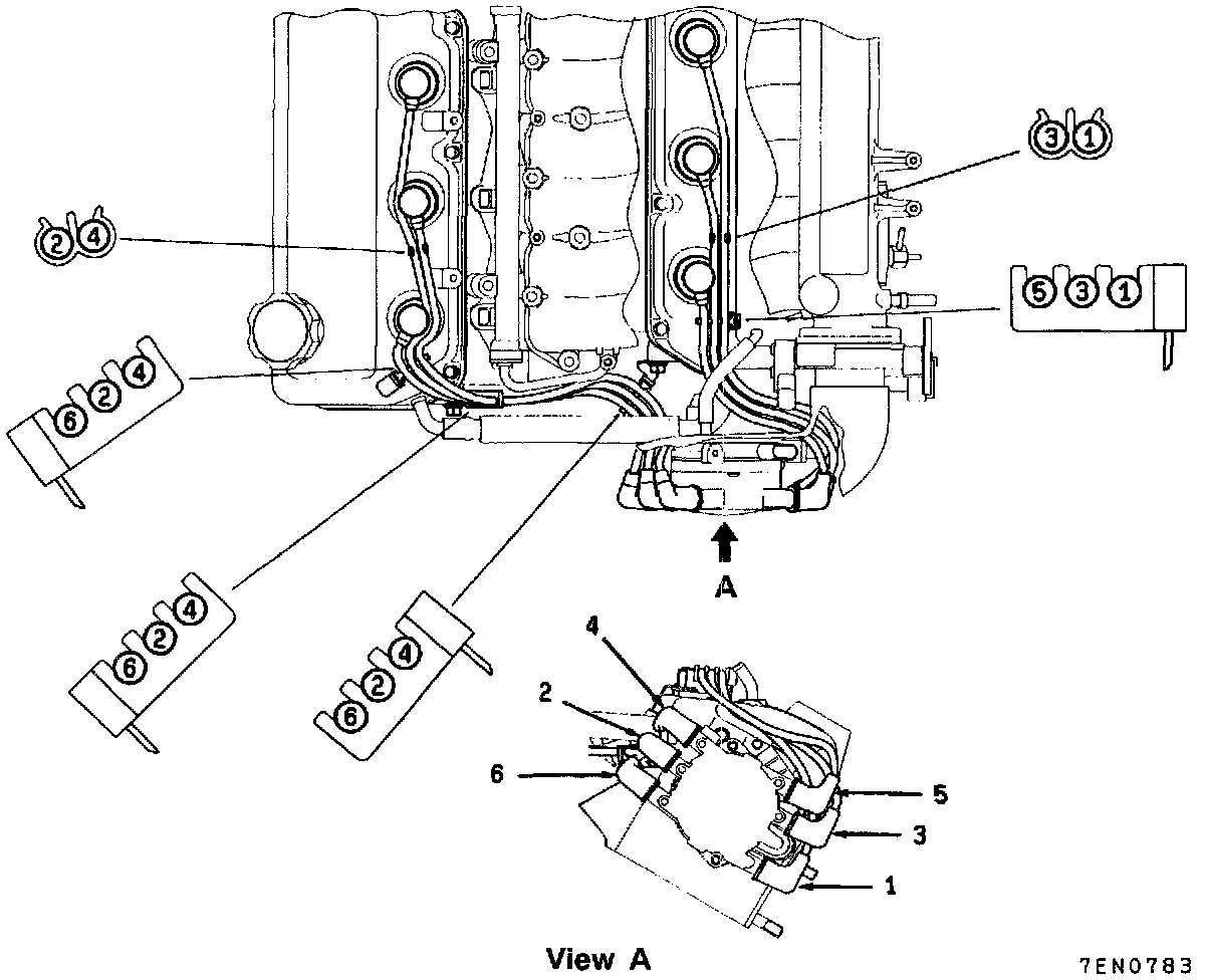 Therefore, be careful to arrange the spark plug cables properly by the following procedure.