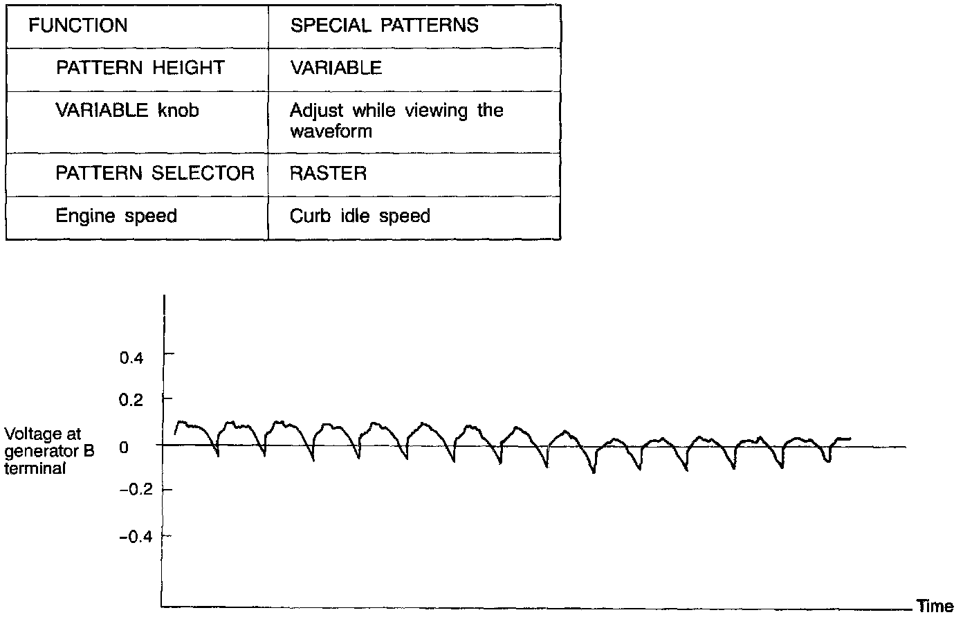 NOTE: The voltage wave-form of the generator B terminal can undulate as shown in the small box. This wave-form is produced when the regulator operates according to fluctuations in the generator load (current), and is normal for the generator.