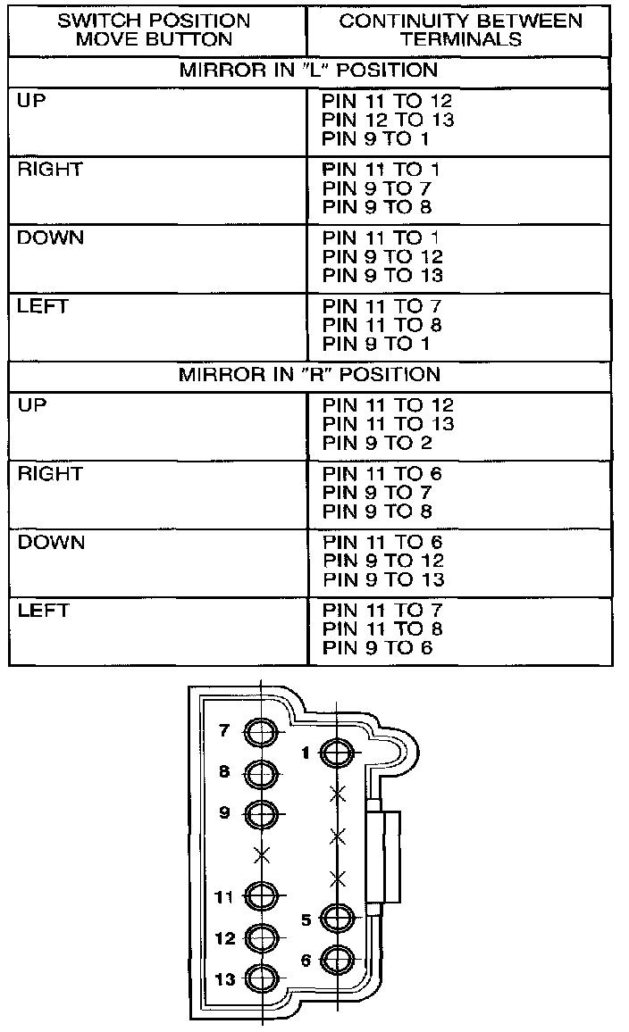 Mirror Switch Connector Pin Call-Out: