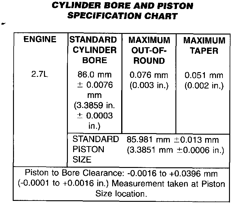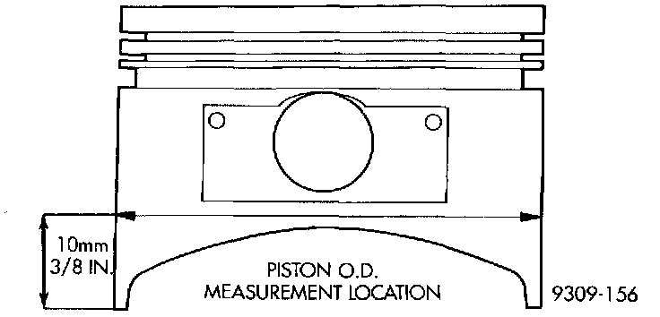 Piston and cylinder wall must be clean and dry. Piston diameter should be measured 90 degrees to piston pin at size location shown. Cylinder bores should be measured halfway down the cylinder bore and transverse to the engine crankshaft center line. Refer to Cylinder Bore and Piston Specification Chart. Pistons and cylinder bores should be measured at normal room temperature, 70° F (21° C).