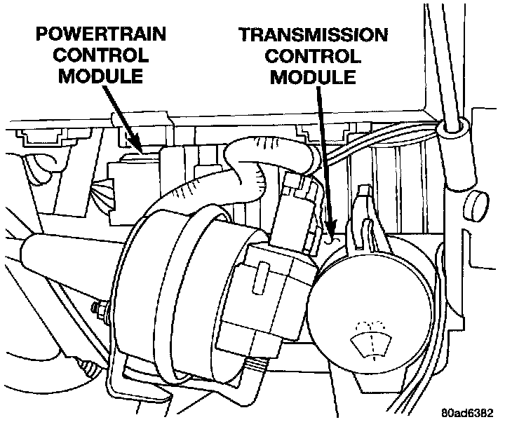 11. Verify the 2 40-way connector is fully inserted into the Powertrain Control Module (PCM). Ensure the wires are not stretched or pulled out of the socket.
