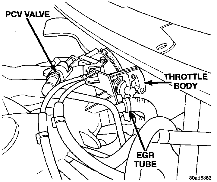 The EGR tube attaches to the intake manifold plenum on both sides of the throttle body and the EGR valve (Fig. 5).