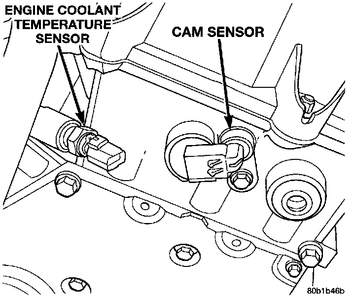 The engine coolant temperature sensor threads into the water jacket next to thermostat housing. The sensor provides an input to the powertrain control module (PCM). As coolant temperature varies, the sensor resistance changes, resulting in a different input voltage to the PCM.