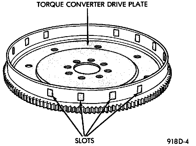 The crankshaft position sensor detects slots cut into the transmission driveplate extension. There are 3 sets of slots. Two sets contain 4 slots and one set contains 5 slots, for a total of 13 slots (Fig. 9). Basic timing is set by the position of the last slot in each group. Once the Powertrain Control Module (PCM) senses the last slot, it determines crankshaft position (which piston will next be at TDC) from the camshaft position sensor input. It may take the PCM one engine revolution to determine crankshaft position.