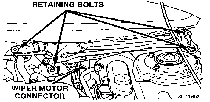 3. Remove three retaining bolts from wiper motor.