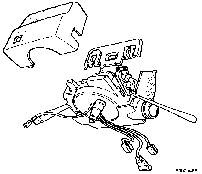 5. Using a screwdriver in place of the lever, tilt the column down. Remove the two mounting screws on the switch and remove the switch. Remove the wiring from the hooks and disconnect the two electrical connections on the multi-function switch. Remove the multi-function switch.