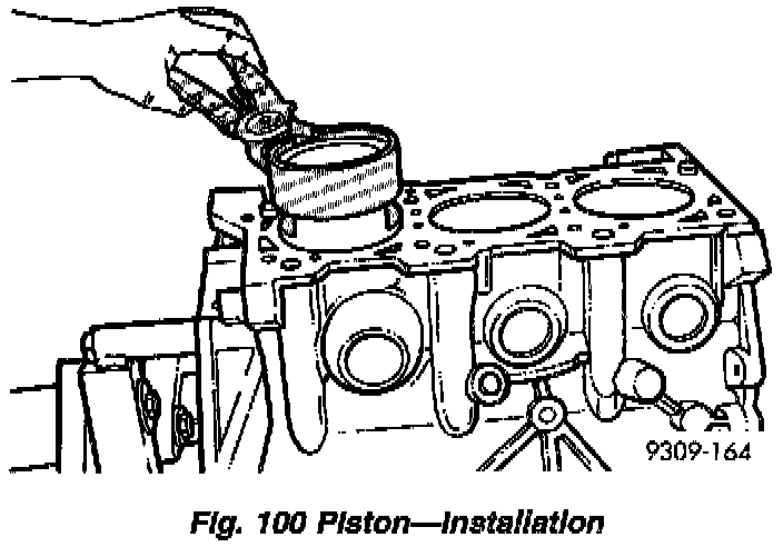 8. Tap the piston down in cylinder bore, using a hammer handle. At the same time, guide connecting rod into position on connecting rod journal.