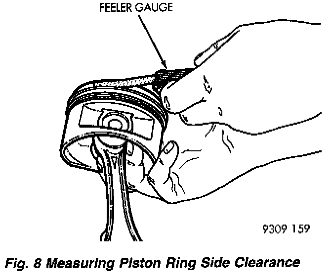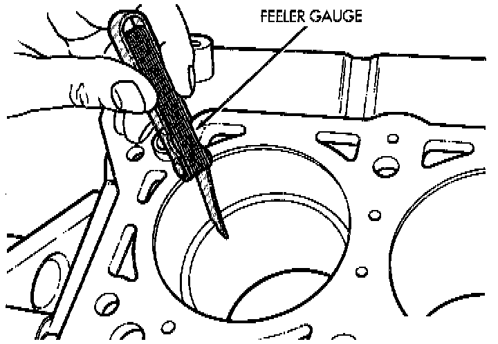 1. Wipe cylinder bore clean. Insert ring and push down with piston to ensure it is square in bore. The ring gap measurement must be made with the ring positioning at least 12 mm (0.50 inch) from bottom of cylinder bore. Check gap with feeler gauge.