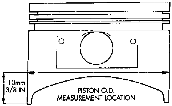 Piston and cylinder wall must be clean and dry. Piston diameter should be measured 90 degrees to piston pin at size location shown in. Cylinder bores should be measured halfway down the cylinder bore and transverse to the engine crankshaft center line. Pistons and cylinder bores should be measured at normal room temperature, 70° F (21° C).