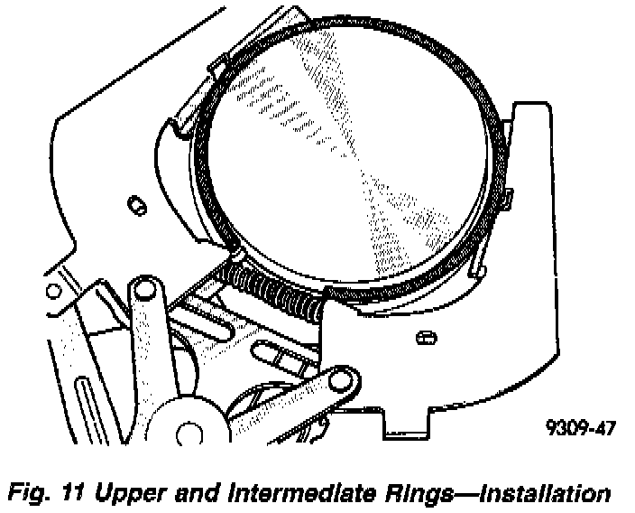 1. The No. 1 and No. 2 piston rings have a different cross section. Insure that the No. 2 ring is installed with manufacturers I.D. mark (dot) facing up, towards top of the piston.