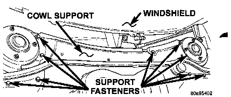 16. Remove fasteners attaching air conditioning condenser to radiator.
