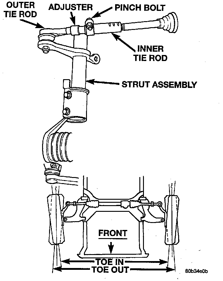 2. Front Wheel Toe Adjustment within specifications for total toe.