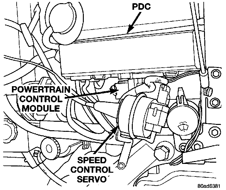 The Power Distribution Center (PDC) is located in the engine compartment (Fig. 1). The PDC contains the starter relay, radiator fan relay, A/C compressor clutch relay, auto shutdown relay, fuel pump relay and several fuses.