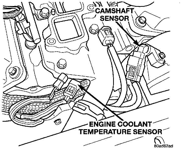The engine coolant temperature sensor threads into the water jacket next to thermostat housing. The sensor provides an input to the powertrain control module (PCM). As coolant temperature varies, the sensor resistance changes, resulting in a different input voltage to the PCM.