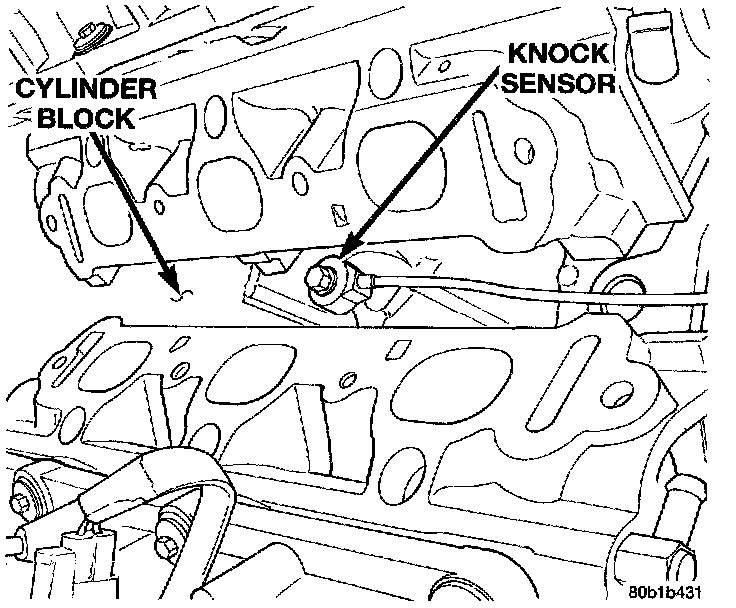 NOTE: The engine uses one knock sensors. The sensor is bolted into the cylinder block, directly below the intake manifold.