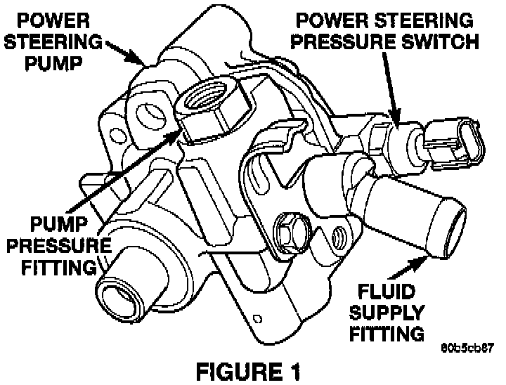 This bulletin involves checking for dummy switch installation, installing a dummy switch as required and/or selectively erasing and reprogramming the Powertrain Control Module (PCM) with new software (calibration changes).1. Raise the vehicle on a hoist. Locate the power steering pump and switch (Figure 1).