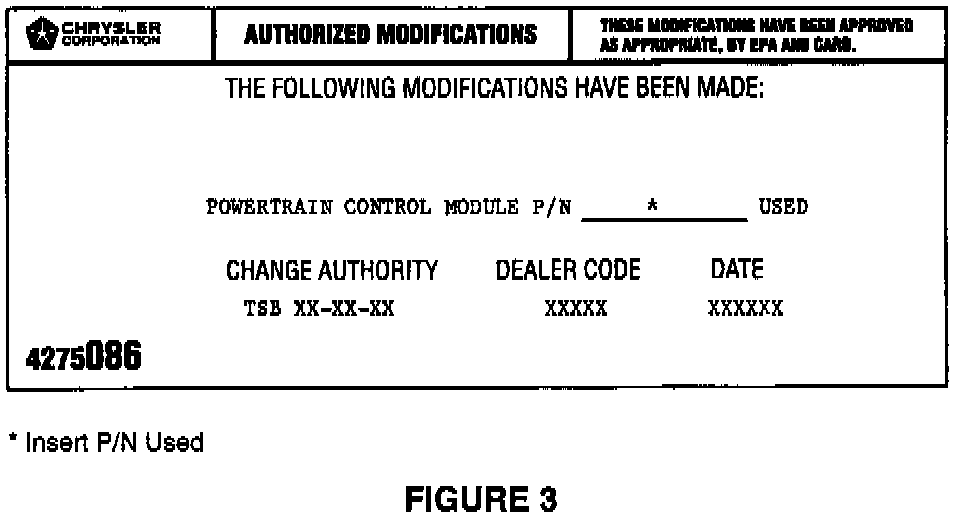 12. Type the necessary information on the "Authorized Software Update Label" p/n 04669020 (Figure 2). Attach the label to the PCM and cover the label with the clear plastic overlay.