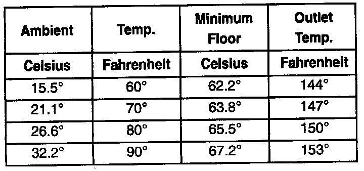 Engine coolant is provided to the heater system by two 16 mm (5/8 inch inside diameter) heater hoses. With engine idling at normal running temperature, set the control to maximum heat, floor, and high blower setting. Using a test thermometer, check the air temperature coming from the floor outlets, refer to Temperature Reference Table.
