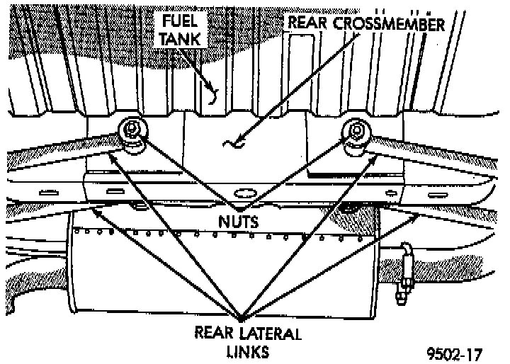 4. Loosen nuts on attaching bolts, for the left and right rear lateral links to rear crossmember.