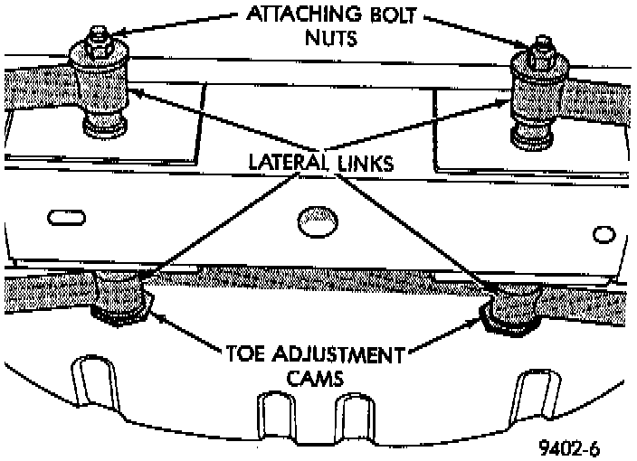 5. Rotate lateral link adjustment cams until the preferred rear Toe specification is obtained.