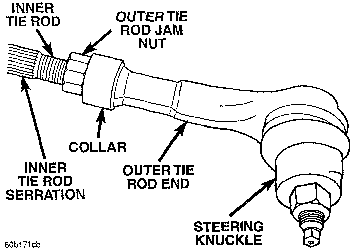 7. Loosen inner to outer tie rod end jam nuts. Grasp inner tie rods at serrations and rotate tie rods to set the front wheel Toe to the preferred specification.