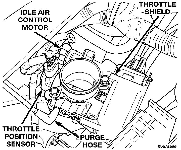 4. Attach electrical connectors to idle air control motor and throttle position sensor.