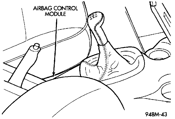 The Airbag Control Module (ACM) contains the safing sensor and energy reserve capacitor. The safing sensor is located inside the ACM. The module is mounted on the tunnel/floor pan between the gear shift lever and the park brake lever. The safing sensor provides confirmation of a crash, but does not discriminate severity. The ACM monitors the system to determine the system readiness. The ACM contains on-board diagnostics, and will illuminate the AIRBAG warning lamp in the cluster when a fault occurs. The warning equipment is tested for 6 to 8 Seconds every time the vehicle is started.