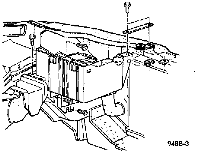 2. Install battery hold down clamp, making sure that it is properly positioned on battery