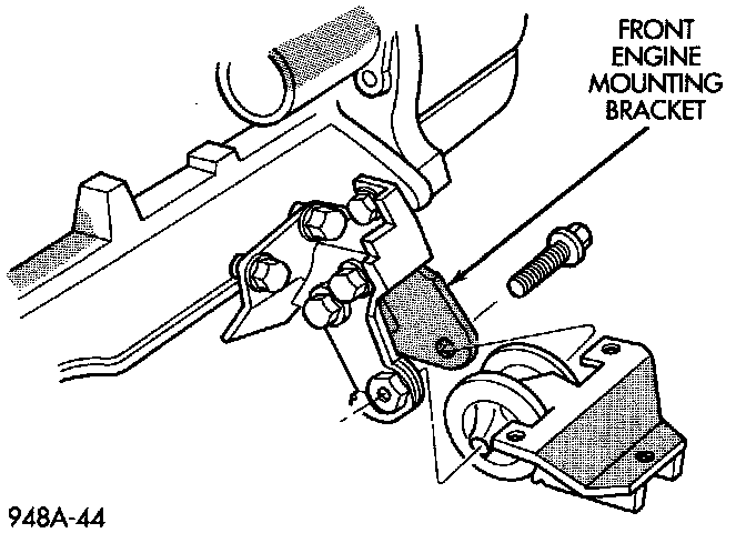 b. Install the front engine mount bolt through the insulator and front crossmember mounting bracket.