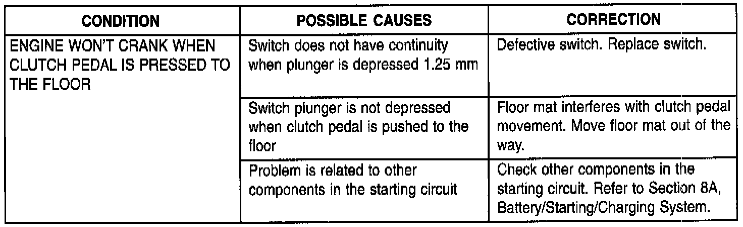 If vehicle will not crank, even with clutch pedal pressed to the floor, refer to "Service Diagnosis Clutch Pedal Position Switch".