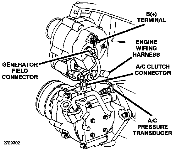 Generator Field Connector, Engine Wiring Harness, A/C Clutch Conn.,A/C Pressure Transducer: