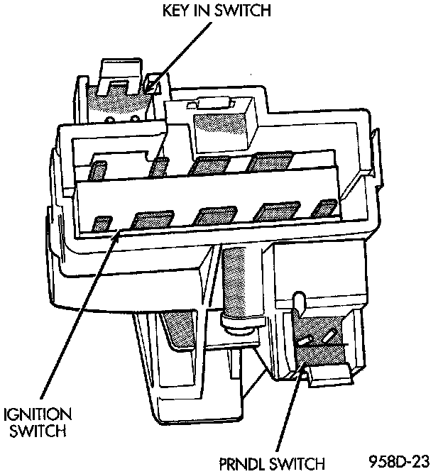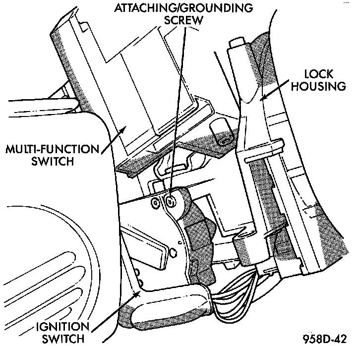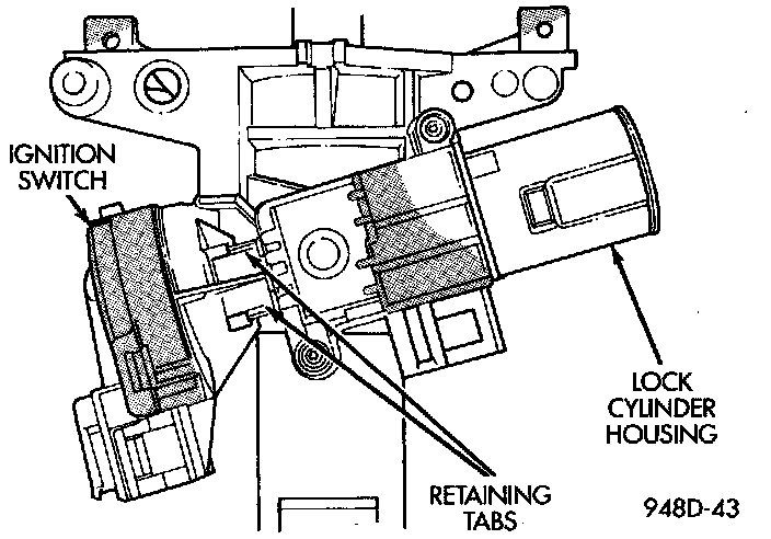 15. Depress retaining tabs and pull ignition switch from steering column.