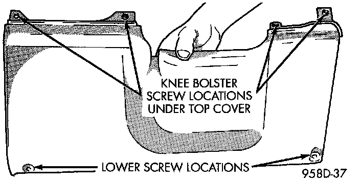5. Pull instrument panel top cover up enough to gain access to knee bolster screws.