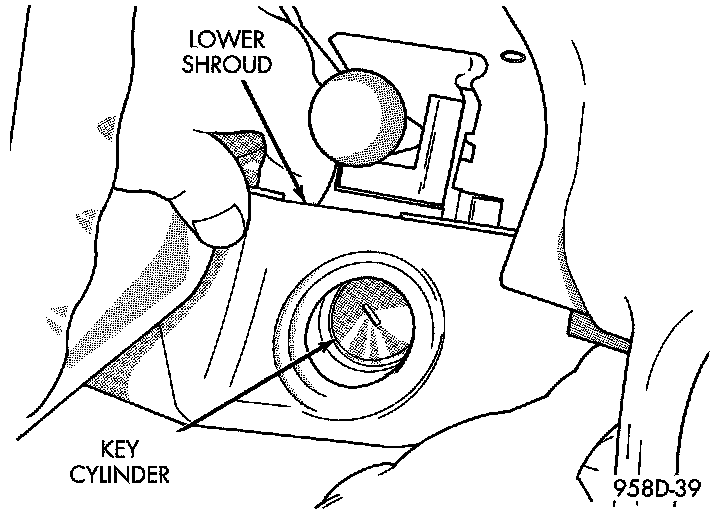 8. Pull lower shroud to clear ignition cylinder and key release, if equipped.