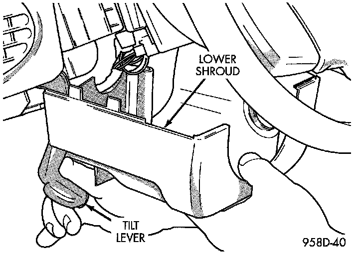9. Hold tilt wheel lever down and slide lower shroud forward to remove it from column.