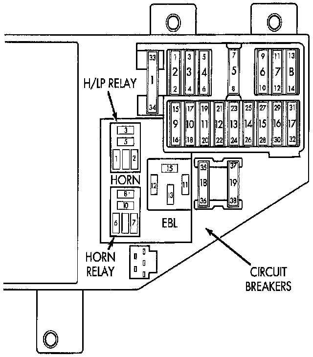 5. The wiper switch in the ON position. Using an voltmeter, check for battery voltage at terminal 29 of the intermittent wiper relay in the Power Distribution Center. If no voltage check fuse 18. If OK, go to Step 6. If not repair as necessary.