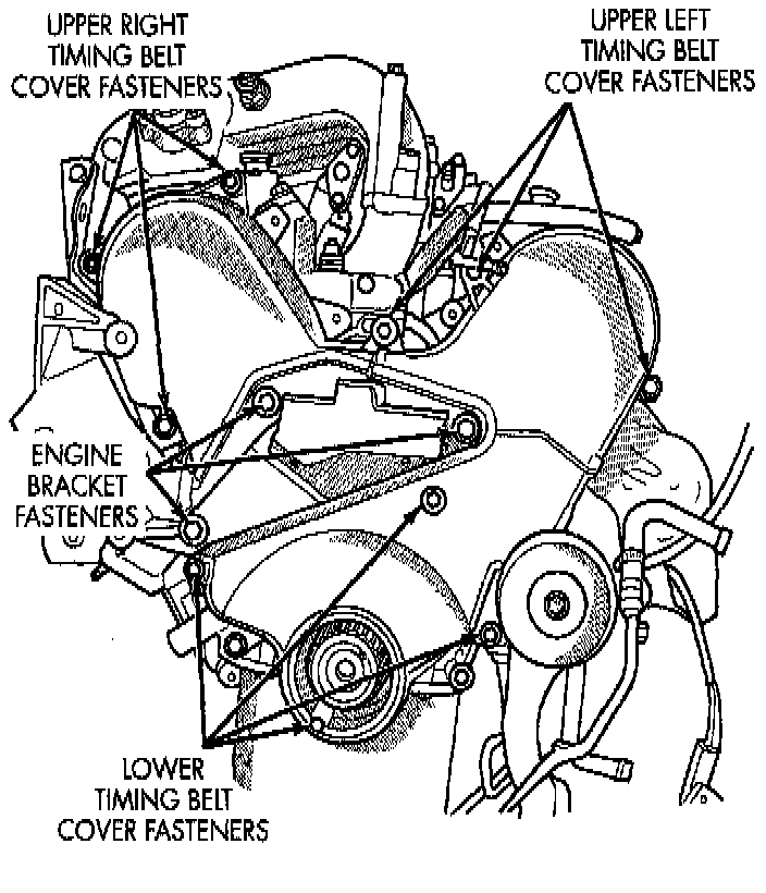 NOTE: To remove right/rear timing belt cover, the power steering pump bracket must be removed.